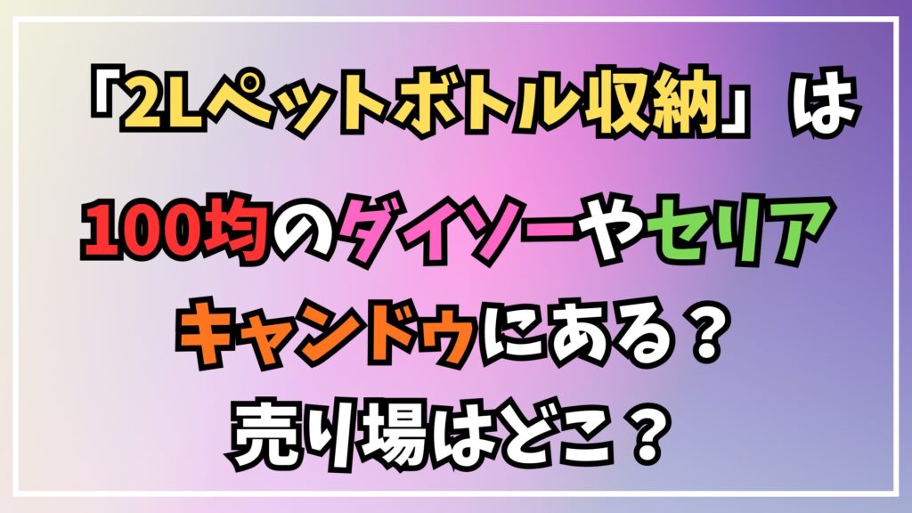 そこでこの記事では、ダイソーやセリア、キャンドゥといった主要な100均ショップを巡り、2Lペットボトル収納に使えるアイテムが実際に販売されているのか、どのような特徴があるのかを詳しく解説します。