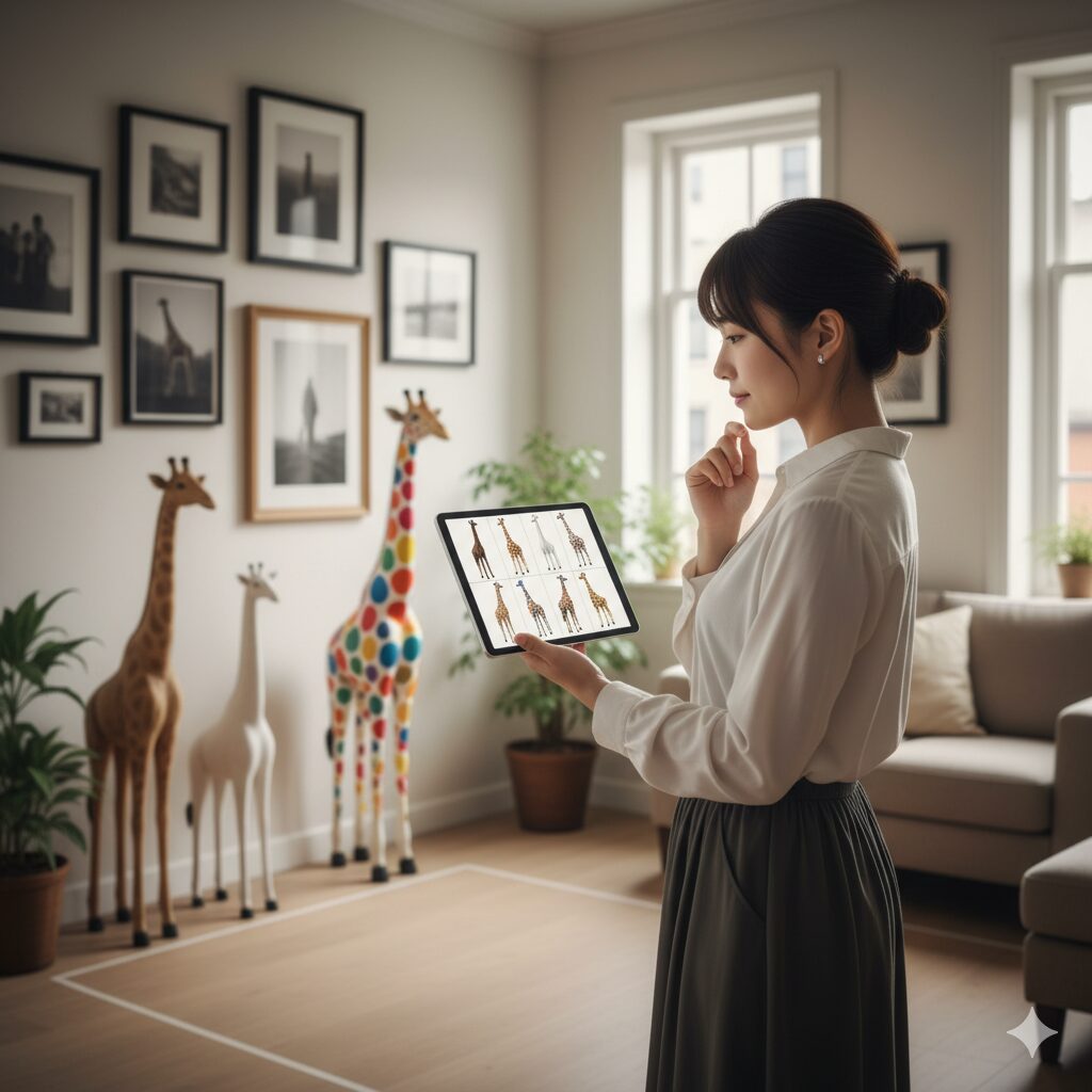 「キリンの置物が欲しいけれど、どれにすればいいのか迷ってしまう」