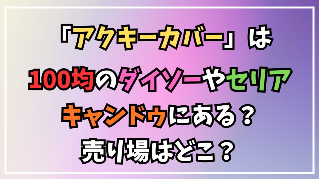 今回は、アクキーカバーが100均のダイソーやセリア、キャンドゥで取り扱われているか、その詳細について解説してきました。