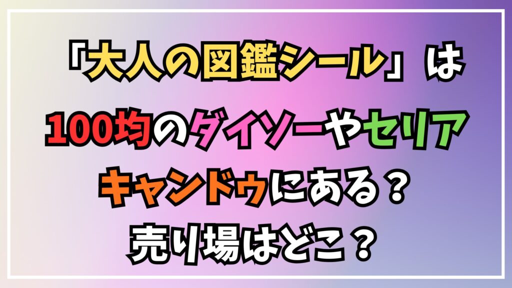 今回は、大人の図鑑シールが100均のダイソー、セリア、キャンドゥで購入できるかについて徹底調査しました。