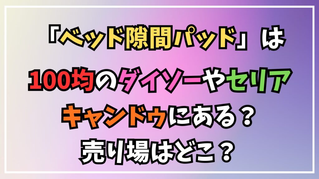そこでこの記事では、ダイソー、セリア、キャンドゥといった主要な100円ショップで、実際にベッド隙間パッドの販売状況はどうなっているのかを詳しく解説します。