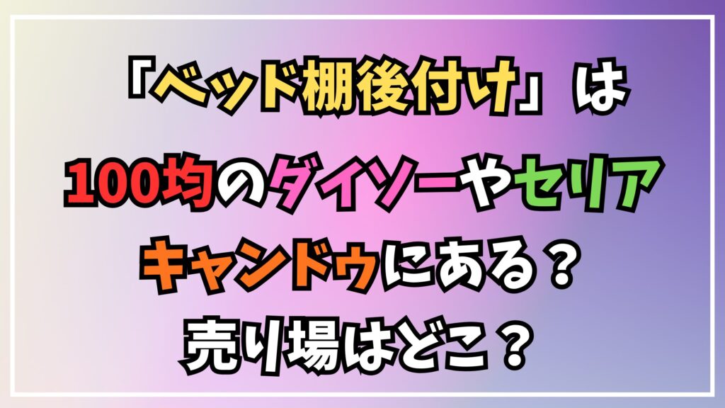 そこでこの記事では、人気の100均であるダイソー、セリア、キャンドゥの各店舗で、ベッド棚後付けの取り扱いがあるか調査し、どのような種類や特徴の商品があるのかを徹底的に解説いたします。