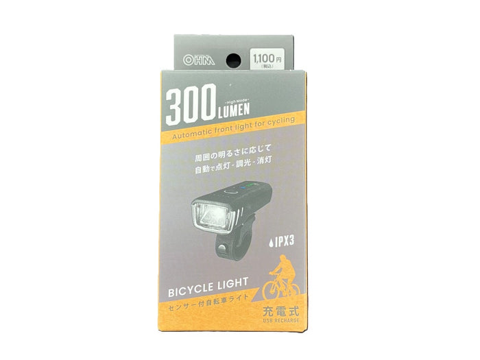 現在のダイソーにおける「最強ライト」との呼び声が高いのがこの製品です。オーム電機が製造しており、明るさは300ルーメンを誇ります。周囲の明るさを感知して自動で点灯・消灯するオートセンサー機能を搭載している点が大きな特徴です。
