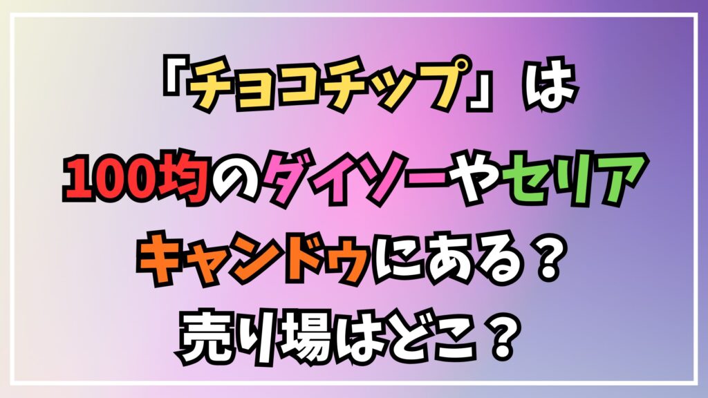 今回は、チョコチップが100均ダイソーやセリア、キャンドゥで販売されているかについて解説しました。
