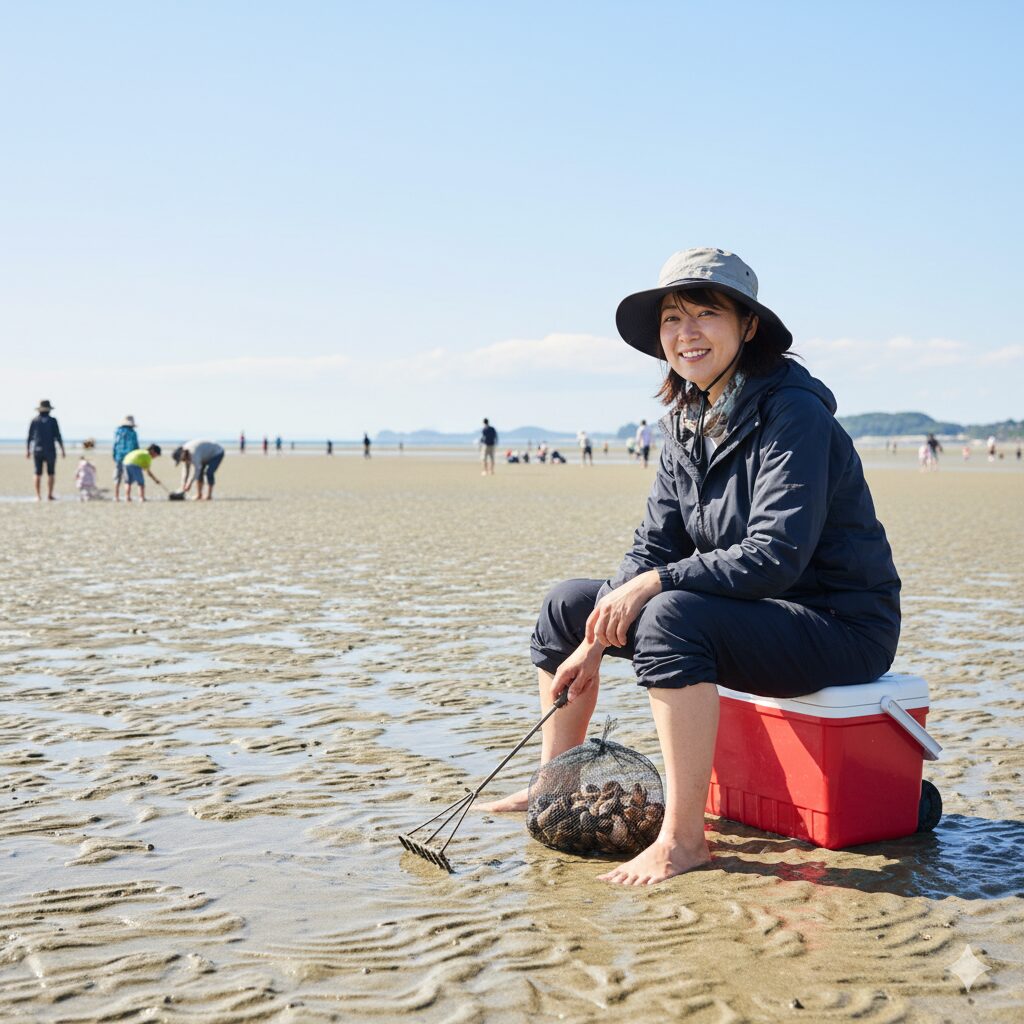 しかし、頑丈で「座れる」クーラーボックスを一つ用意するだけで、休憩場所の確保、作業効率の向上、そして獲れたアサリの鮮度維持という三つの大きな悩みを一挙に解決できます。