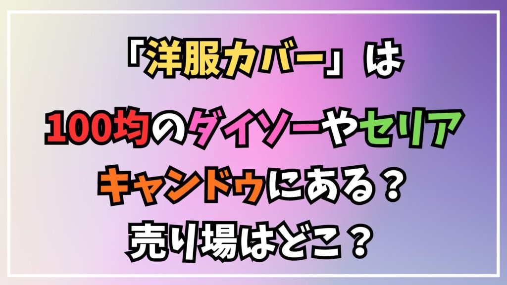 そこでこの記事では、人気の100均であるダイソー、セリア、キャンドゥの各店舗で、洋服カバーの取り扱いがあるか調査し、どのような種類や特徴の商品があるのかを徹底的に解説いたします。