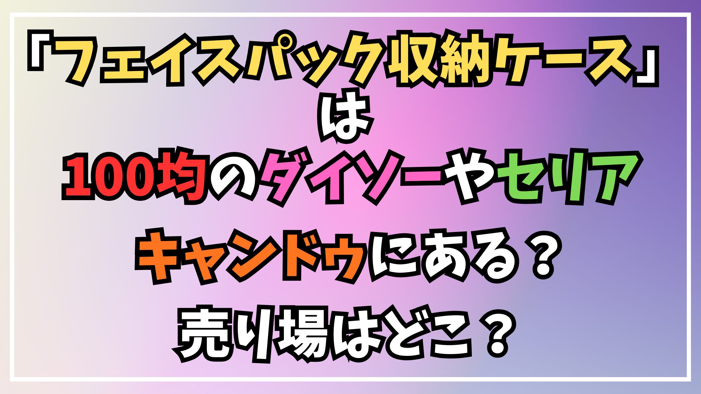 そこでこの記事では、人気の100均であるダイソー、セリア、キャンドゥの各店舗で取り扱いがあるか調査し、どのような種類や特徴の商品があるのかを徹底的に解説いたします。