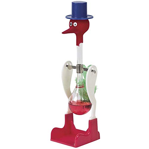 コップの水が蒸発して無くならない限り、頭部の気化熱と内部の液体の移動による重心変化を利用して動き続けるとされています。ただし、周囲の温度や湿度などの環境条件によっては動きが鈍くなることもあります。