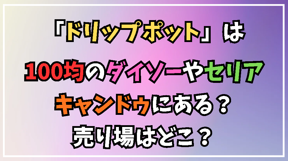 今回は、ダイソー、セリア、キャンドゥにおけるドリップポットの取り扱い状況について解説してきました。