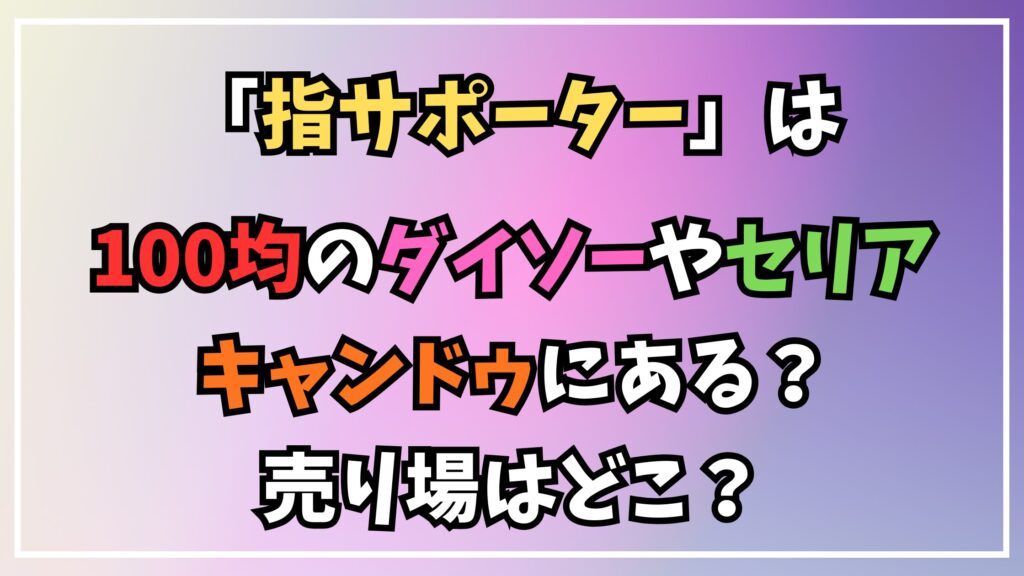 結論として、指サポーターは100均ダイソーやセリア・キャンドゥのすべての店舗で販売されています。