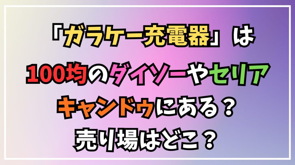 そこでこの記事では、人気の100円ショップであるダイソーやセリア、キャンドゥの各店舗を回り、ガラケー充電器が売っているかについて詳しく解説いたします。