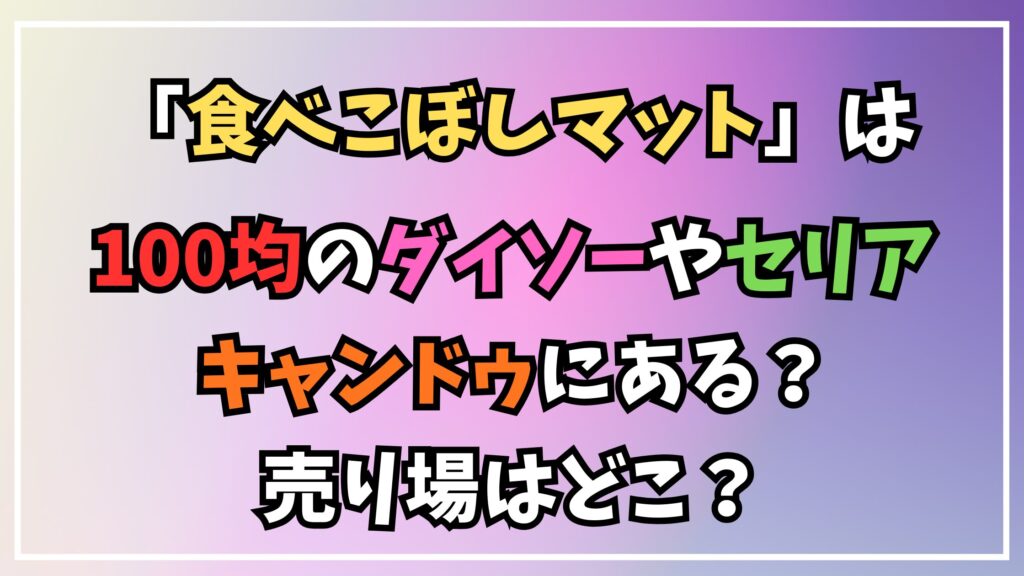 キャンドゥについても、調査時点では「食べこぼしマット」という商品名の専用品は、公式通販サイト等で確定的な情報が見当たりませんでした。