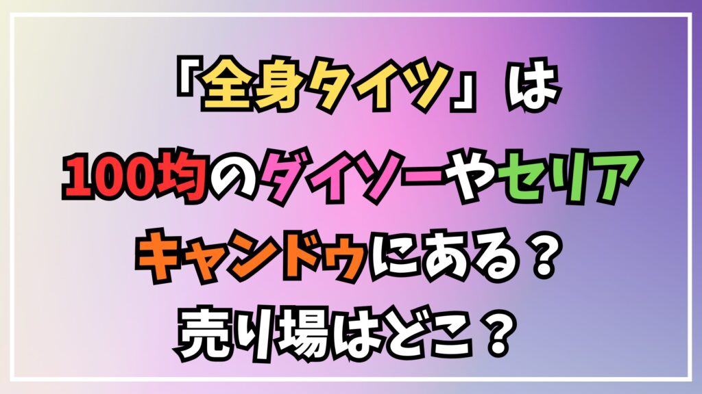 100円ショップの中でも特に品揃えが豊富なダイソーですが、現在のところ「全身タイツ(ゼンタイ)」として常時販売されている商品の確実な在庫情報は確認できませんでした。