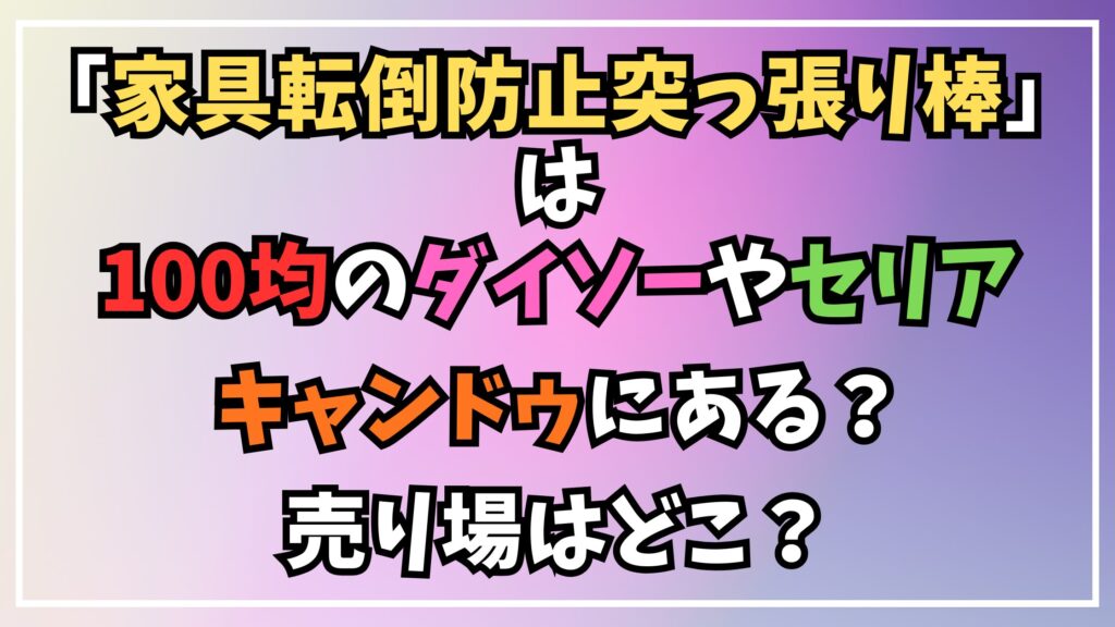 今回は、家具転倒防止突っ張り棒は100均のダイソーやセリア、キャンドゥにあるのか、その取り扱い状況について解説しました。