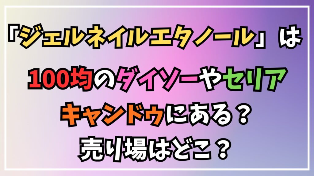 今回は、ダイソー、セリア、キャンドゥにおけるジェルネイル用エタノールの取り扱い状況について解説しました。