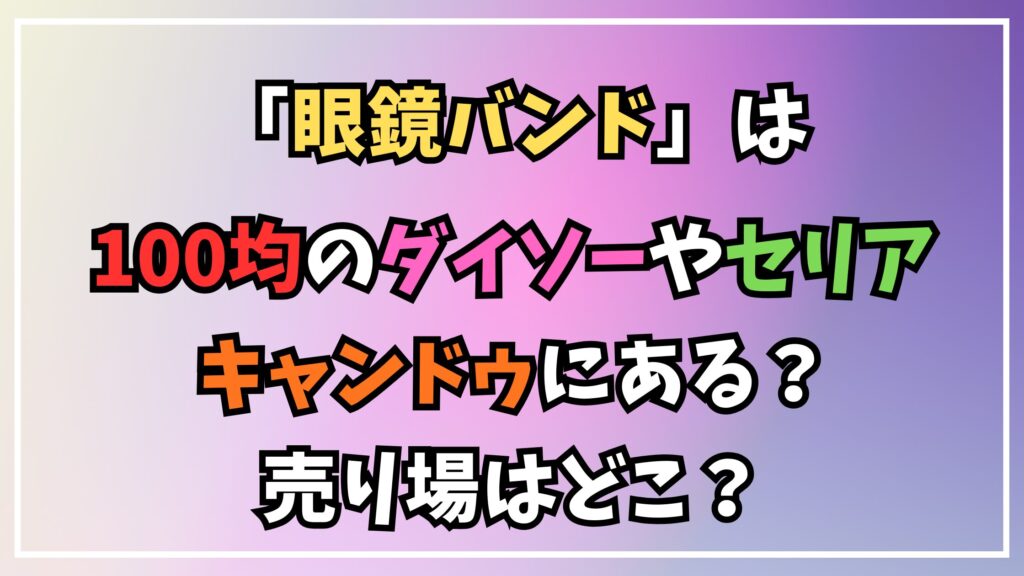 今回は、眼鏡バンドが100均のダイソーやセリア、キャンドゥで買えるかについて解説しました。
