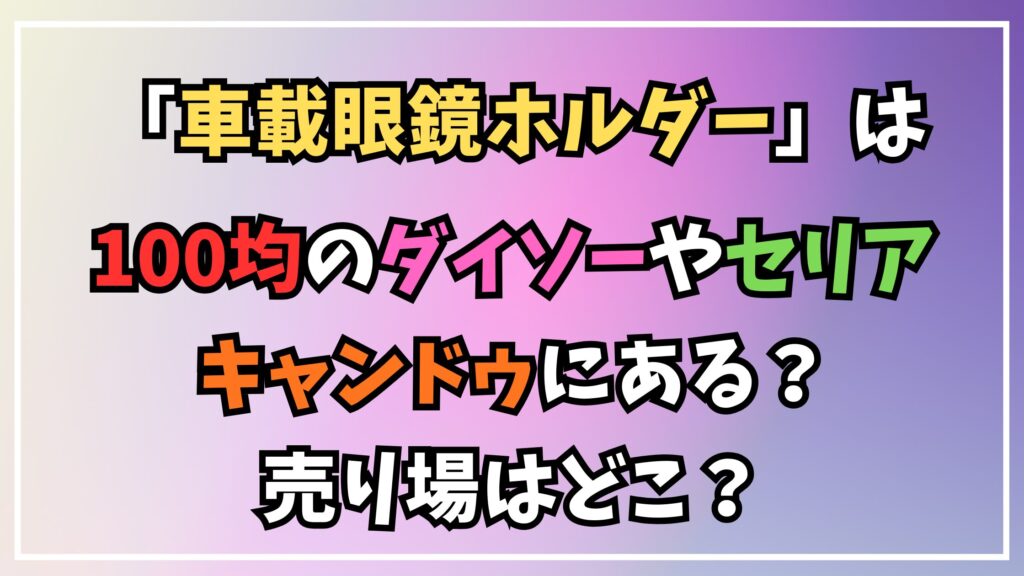 そこでこの記事では、車載用眼鏡ホルダーが100均で取り扱いがあるか調査し、ダイソーやセリア、キャンドゥの各店舗にどのような商品があるのかを徹底的に解説いたします。