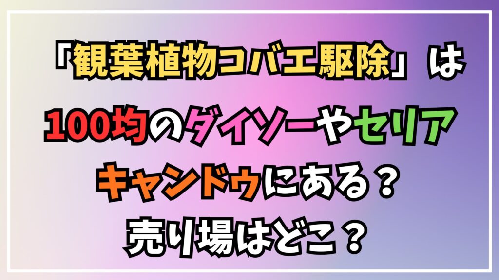 そこでこの記事では、ダイソーやセリア、キャンドゥといった主要なショップで、観葉植物コバエ駆除に関する商品が実際に販売されているのか、その種類や特徴について詳しく解説します。