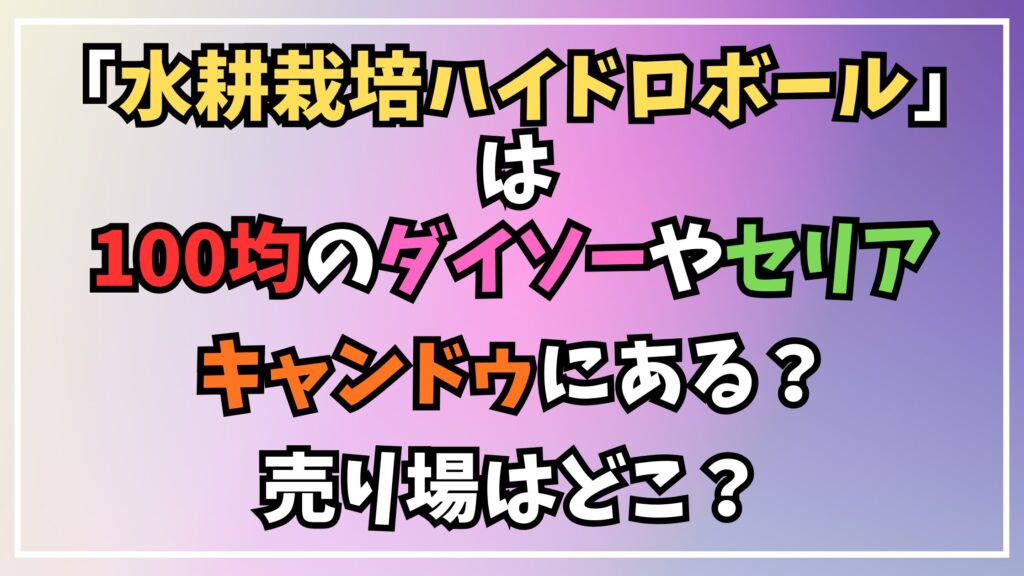 そこでこの記事では、ダイソー、セリア、キャンドゥといった主要な100円ショップの各店舗で、ハイドロボールの取り扱いがあるか調査し、どのような種類や特徴の商品があるのかを徹底的に解説いたします。