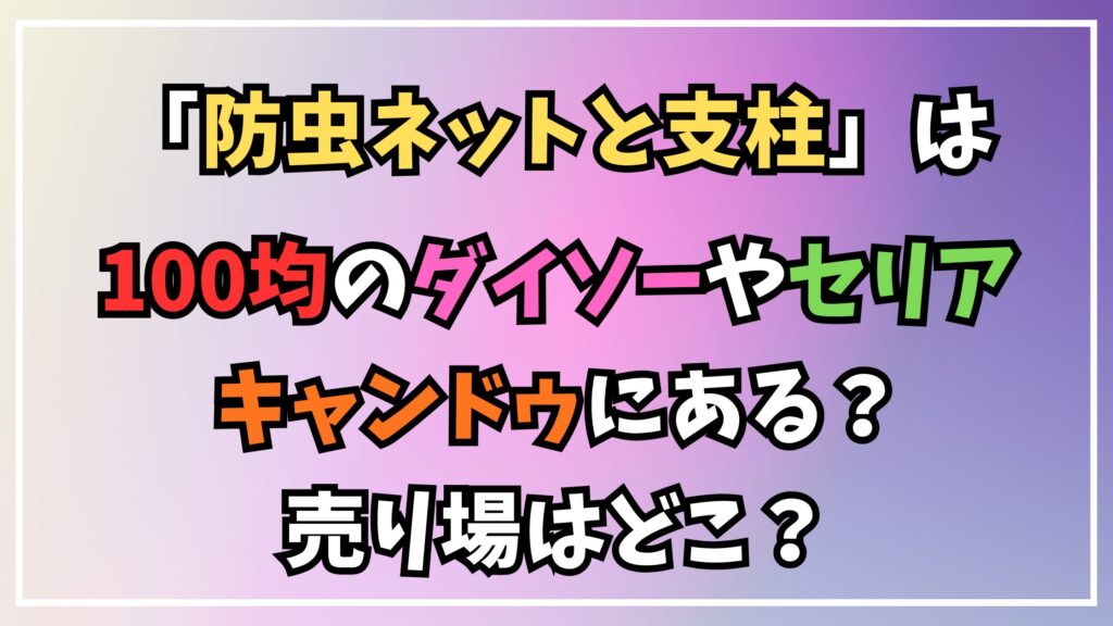 そこでこの記事では、人気の100円ショップであるダイソー、セリア、キャンドゥの各店舗で、防虫ネットや支柱の取り扱いがあるかリサーチし、どのようなサイズや種類の商品の在庫があるのかを徹底的に解説いたします。