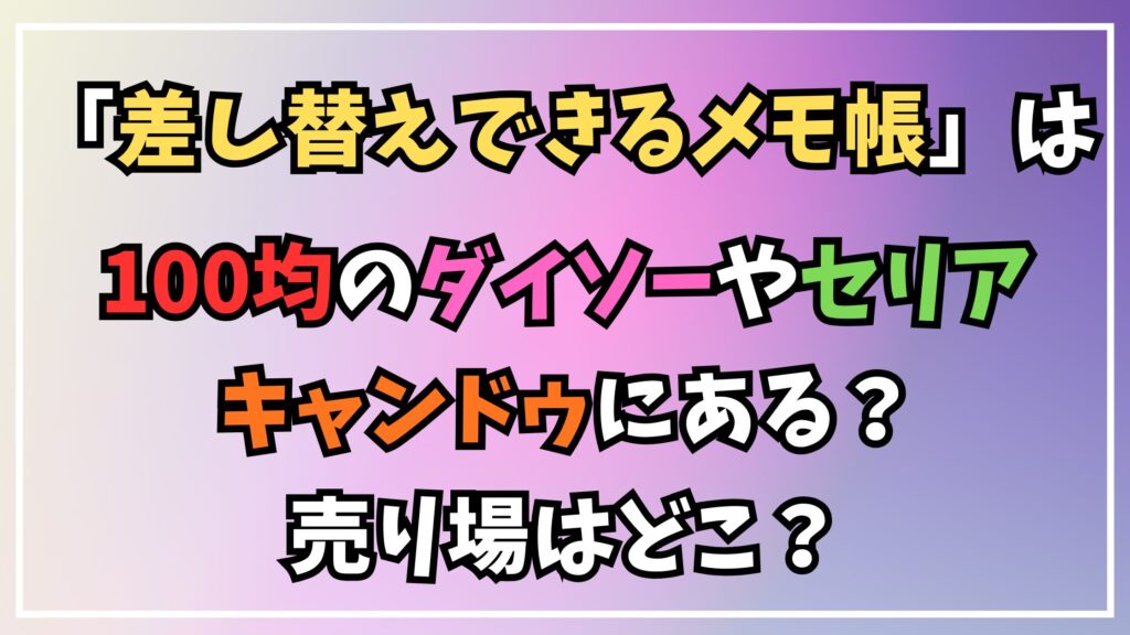 結論として、差し替えできるメモ帳は100均ダイソーやセリア・キャンドゥのすべての店舗で入手可能です。