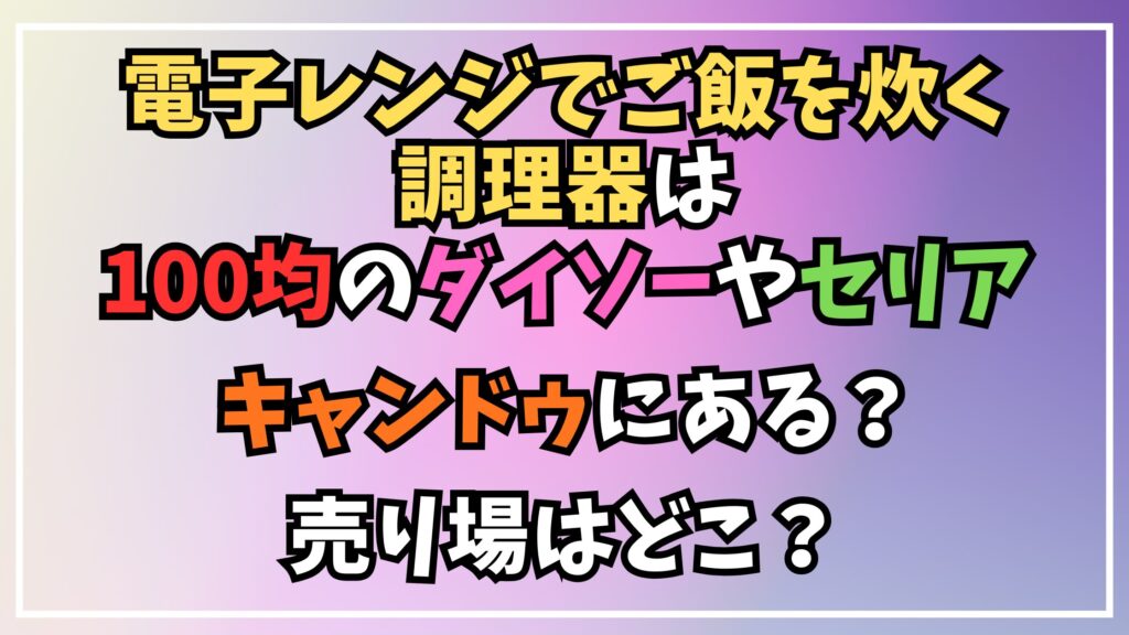 今回は、電子レンジでご飯を炊く調理器が100均ダイソーやセリア、キャンドゥで買えるのかについて詳しく解説しました。