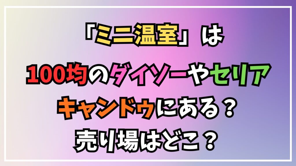 - ダイソー・セリア・キャンドゥでのミニ温室の最新販売状況