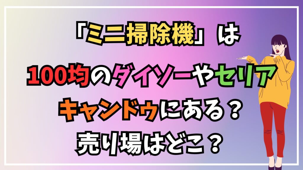 ただ、導入を検討する際に多くの方がまず考えるのは、身近で手軽に手に入るミニ掃除機は100均で取り扱いがあるか調査したいということではないでしょうか。