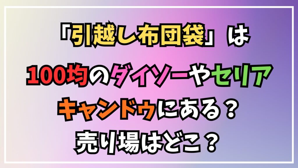 今回は、引越し布団袋は100均ダイソーやセリア、キャンドゥで手に入るのかについて解説しました。