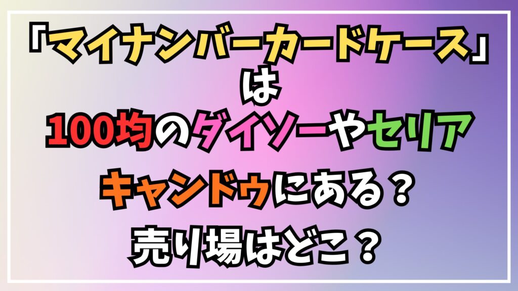 個人情報の保護やカードの汚れ防止に役立つマイナンバーカードケースですが、身近な100円ショップで手軽に購入できれば便利ですよね。