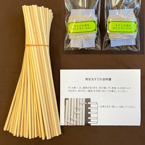 巻き簾(竹製) サイズが手頃で扱いやすいのが特徴です。一度糸をほどき、丈夫なタコ糸などで編み直すことで、ミニサイズの玉すだれ風おもちゃが作れます。