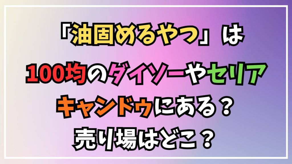 今回の調査の結果、油固めるやつは100均のダイソー、セリア、キャンドゥのいずれの店舗でも取り扱いがあることが分かりました。