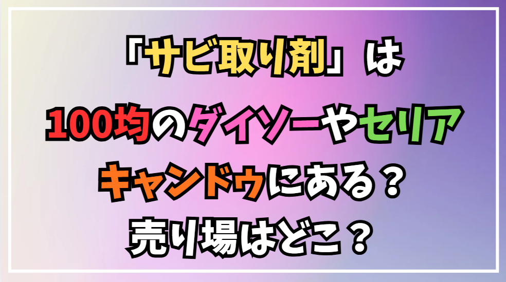 サビ取り剤を100均のダイソー・セリア・キャンドゥで探す前に、全社の具体的な取り扱いと陳列されている売り場を徹底調査しました。各店舗で販売されている製品の形状や性能の違い、そして最適な探し方がわかります。