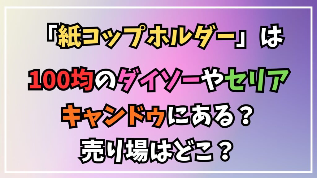 今回は、紙コップホルダーが100均のダイソーやセリア、キャンドゥで手に入るのかについて調査し、解説してきました。