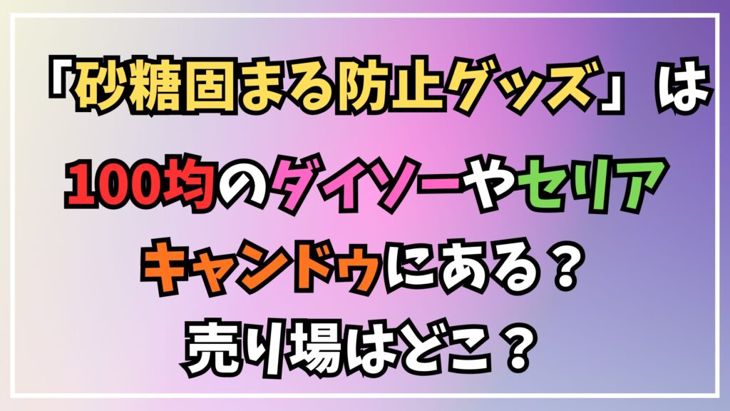 そこでこの記事では、身近なダイソーやセリア、そしてキャンドゥといった主要なショップを巡り、砂糖が固まるのを防ぐ便利なグッズが販売されているか徹底的にリサーチしました。