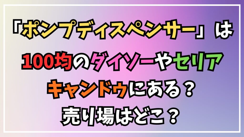 今回は、ポンプディスペンサーの取り扱いについて解説してきました。調査の結果、ダイソー、セリア、キャンドゥのいずれの店舗でも購入可能であることが分かりました。