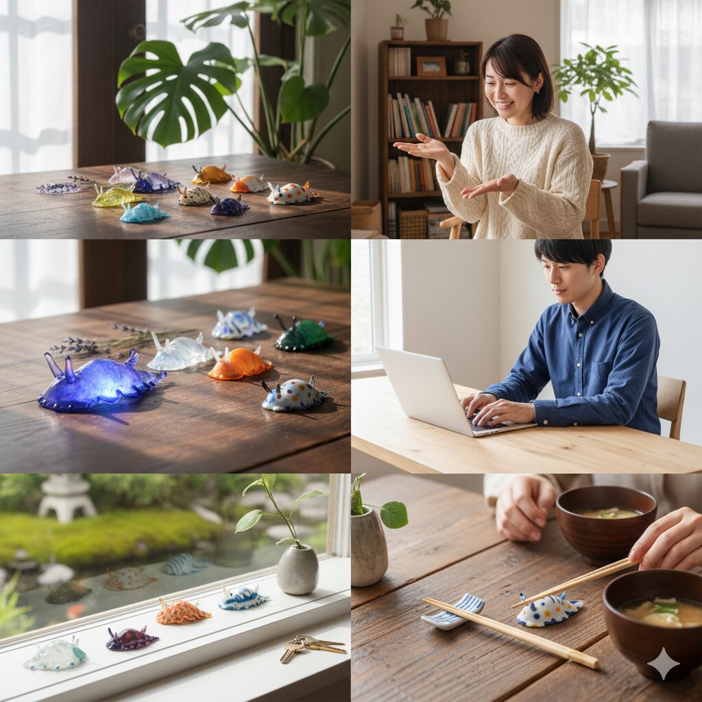 特に、ガラス製のウミウシは光を透過し、キラキラと輝く姿が心を穏やかにしてくれます。