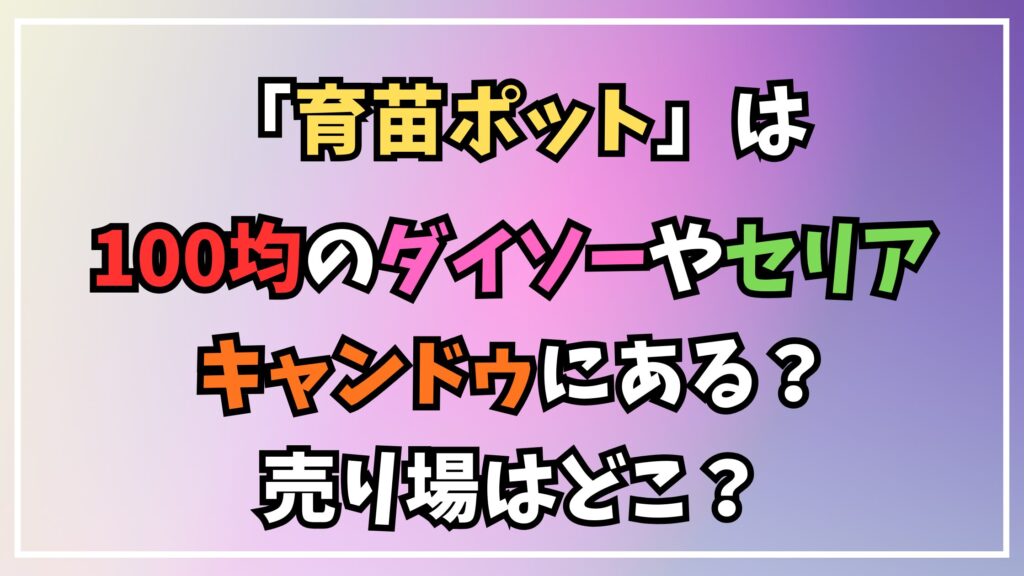 今回は、ダイソー、セリア、キャンドゥにおける育苗ポットの取り扱いについて解説しました。