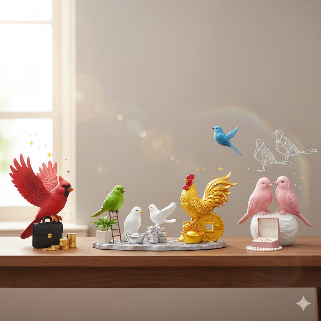複数・つがいの小鳥の置物は、風水において非常に強力な意味を持ちます。