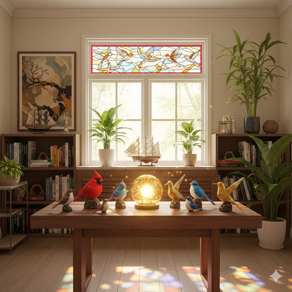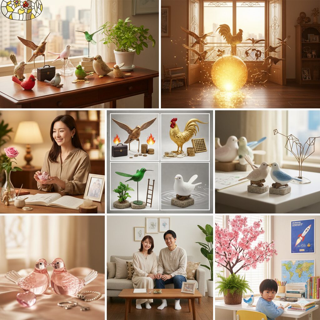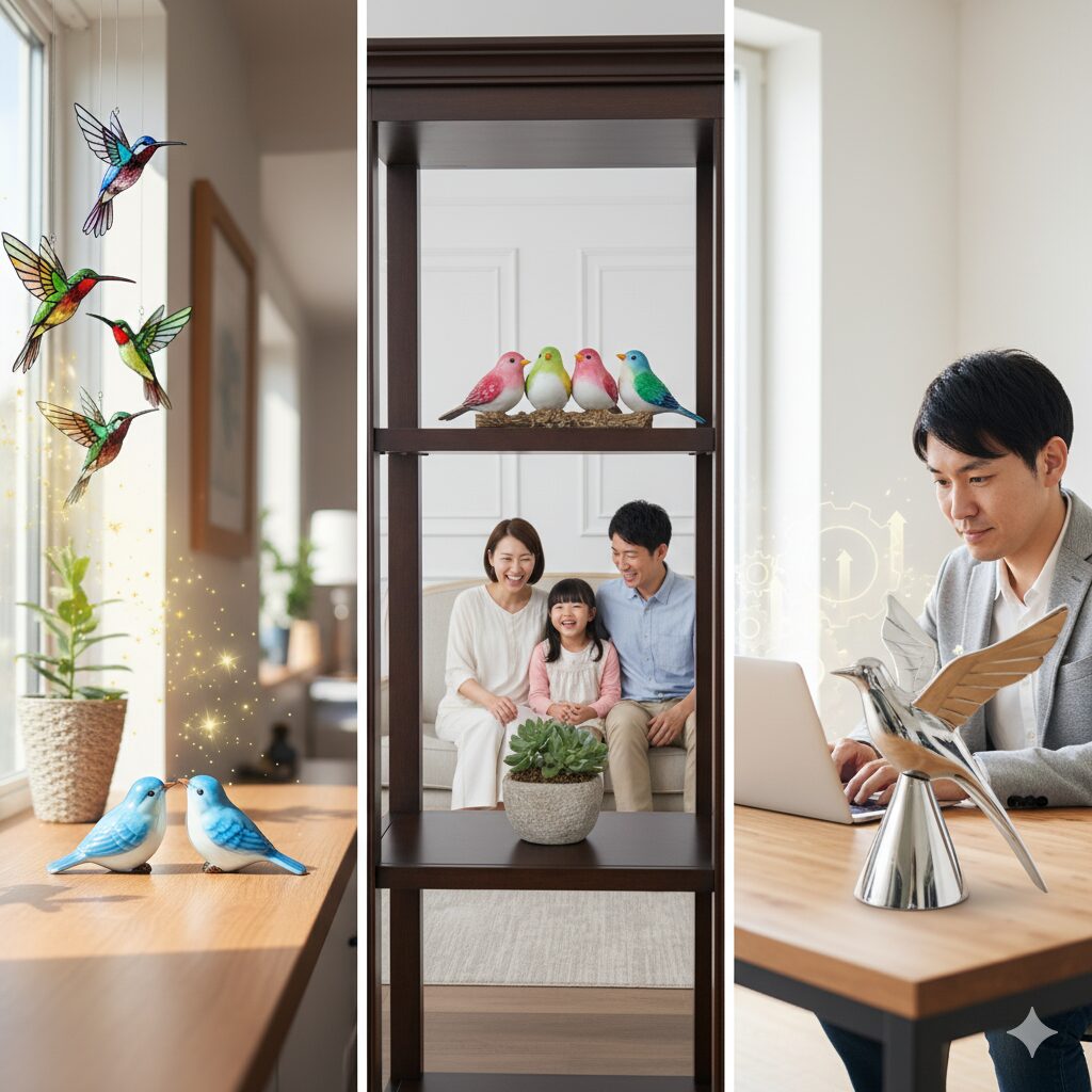 - 小鳥の置物を置く場所別の風水活用術(窓辺、棚、デスクなど)