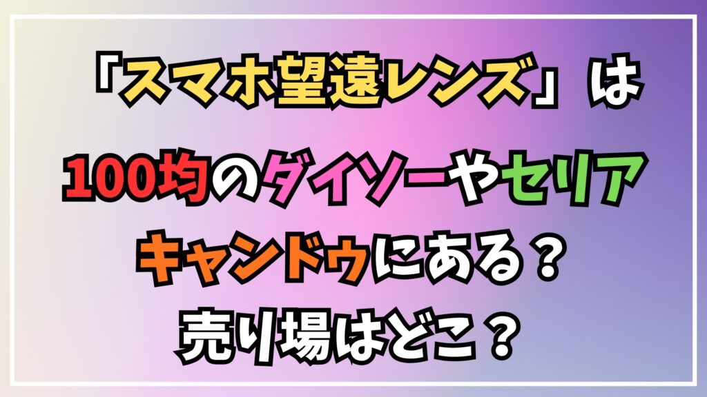 そこでこの記事では、スマホ望遠レンズが100均のダイソーやセリア、キャンドゥで取り扱いがあるか調査し、販売状況を詳しく解説します。