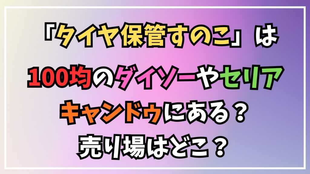 そこでこの記事では、ダイソーやセリア、キャンドゥといった主要なショップを巡り、タイヤ保管に使える商品があるのか、その実用性はどうなのかを徹底的に解説いたします。