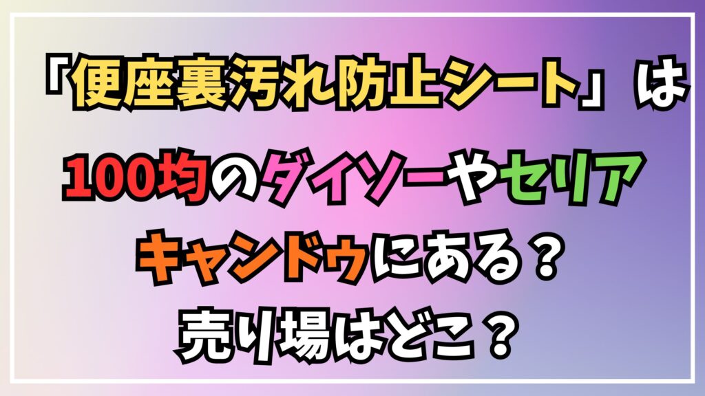そこでこの記事では、ダイソーやセリア、キャンドゥといった主要な100円ショップで便座裏汚れ防止シートの取り扱いがあるか調査し、各店舗の商品の特徴やスペックについて詳しく解説いたします。