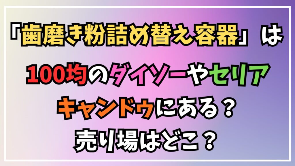 今回は、歯磨き粉詰め替え容器が100均ダイソーやセリア・キャンドゥのどの売り場にあるのか、そして具体的な商品情報について解説しました。