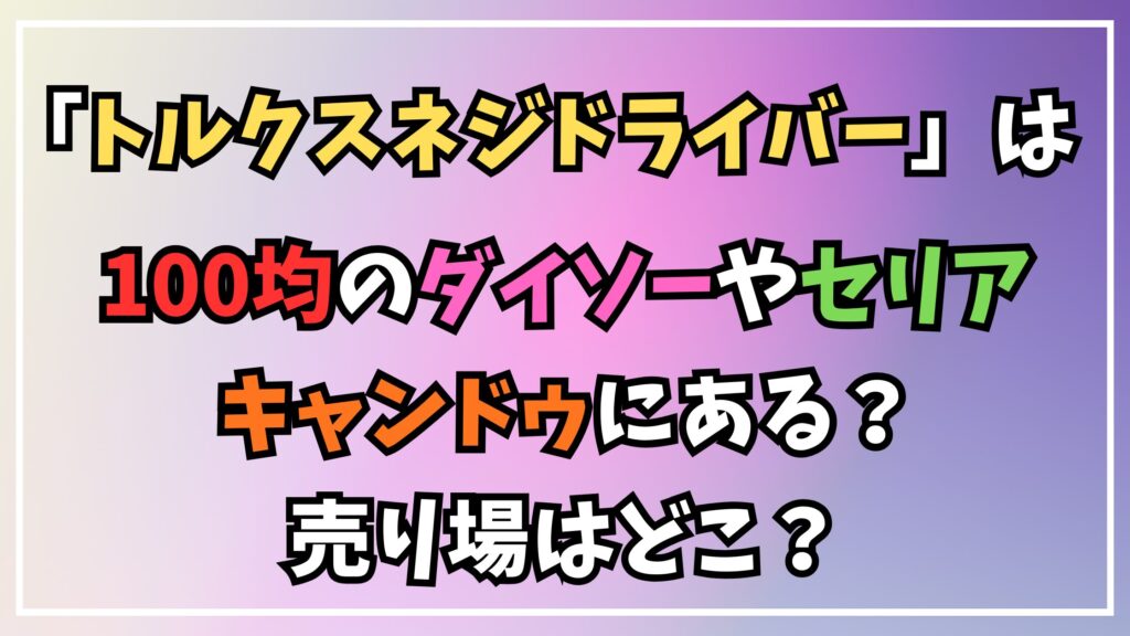 そこでこの記事では、ダイソーやセリア、キャンドゥといった主要な100円ショップの店舗で、トルクスネジドライバーの取り扱いがあるか調査し、具体的なサイズや売り場について詳しく解説いたします。