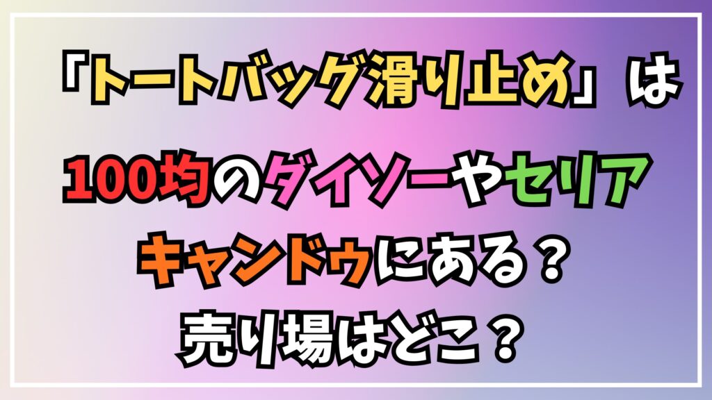 今回は、「トートバッグ 滑り止め 100均 ダイソー セリア キャンドゥ」というキーワードで検索されている方に向けて、各ショップの取り扱い状況を徹底調査しました。