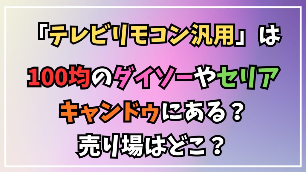 今回は、テレビリモコン汎用が100均のダイソーやセリア、キャンドゥで販売されているかについて解説しました。