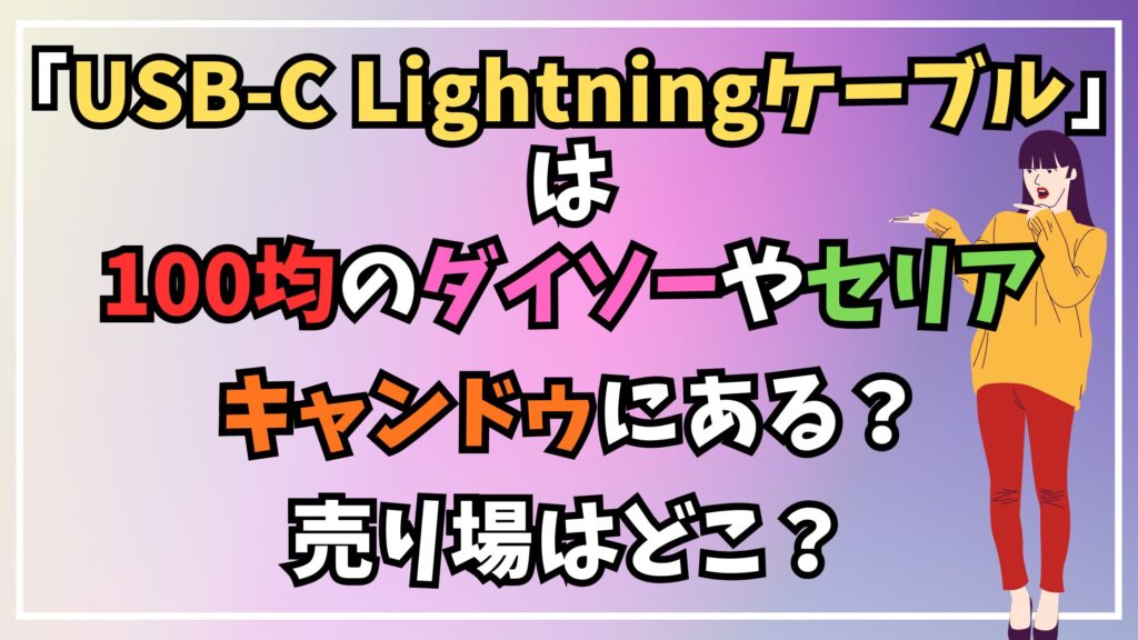 そこでこの記事では、人気の100均であるダイソー、セリア、キャンドゥの各店舗でUSB-C Lightningケーブルの取り扱いがあるか調査し、どのような種類や特徴の商品があるのかを徹底的に解説いたします。