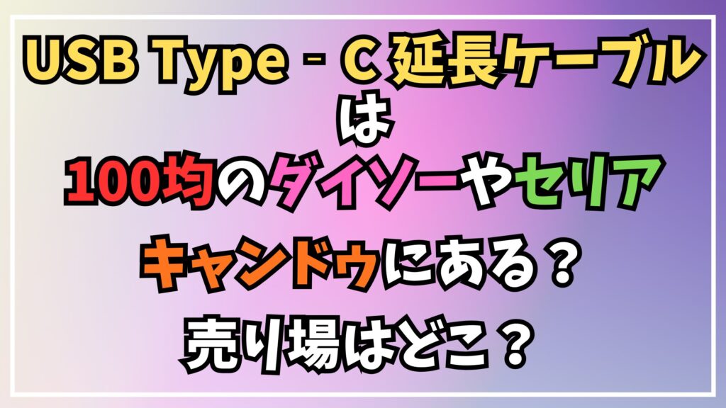 そこでこの記事では、ダイソーやセリア、キャンドゥといった主要な100円ショップの店舗を回り、USB Type-C 延長ケーブルの販売状況や売り場について詳しく解説していきます。