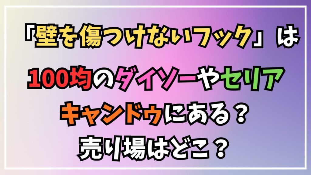 今回は、壁を傷つけないフックが100均のダイソー、セリア、キャンドゥで販売されているかについて徹底的に調査し、その結果をお伝えしました。